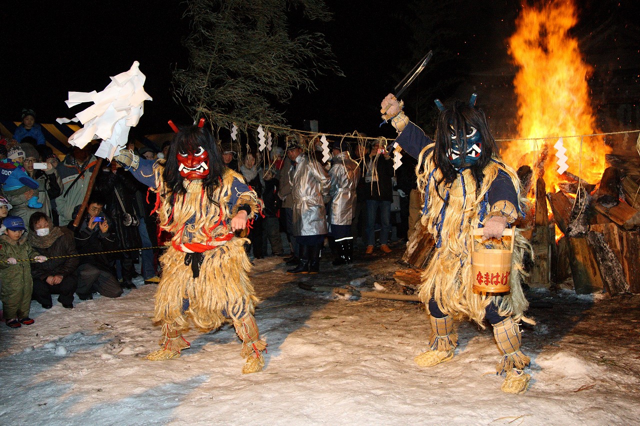 大晦日に男鹿市各地域で、なまはげが家々を訪れる伝統行事「男鹿のナマハゲ」が神楽殿で再現されます。